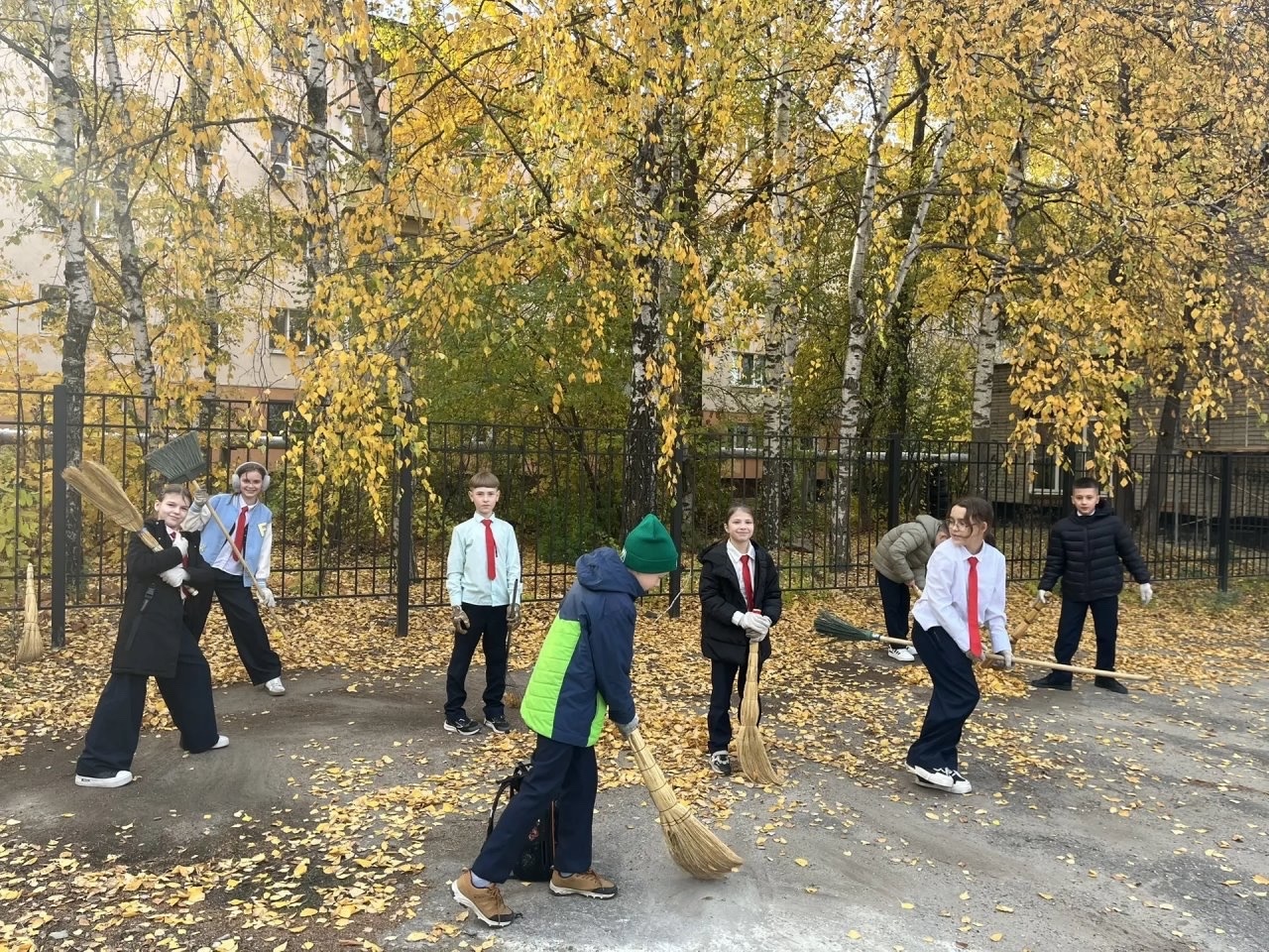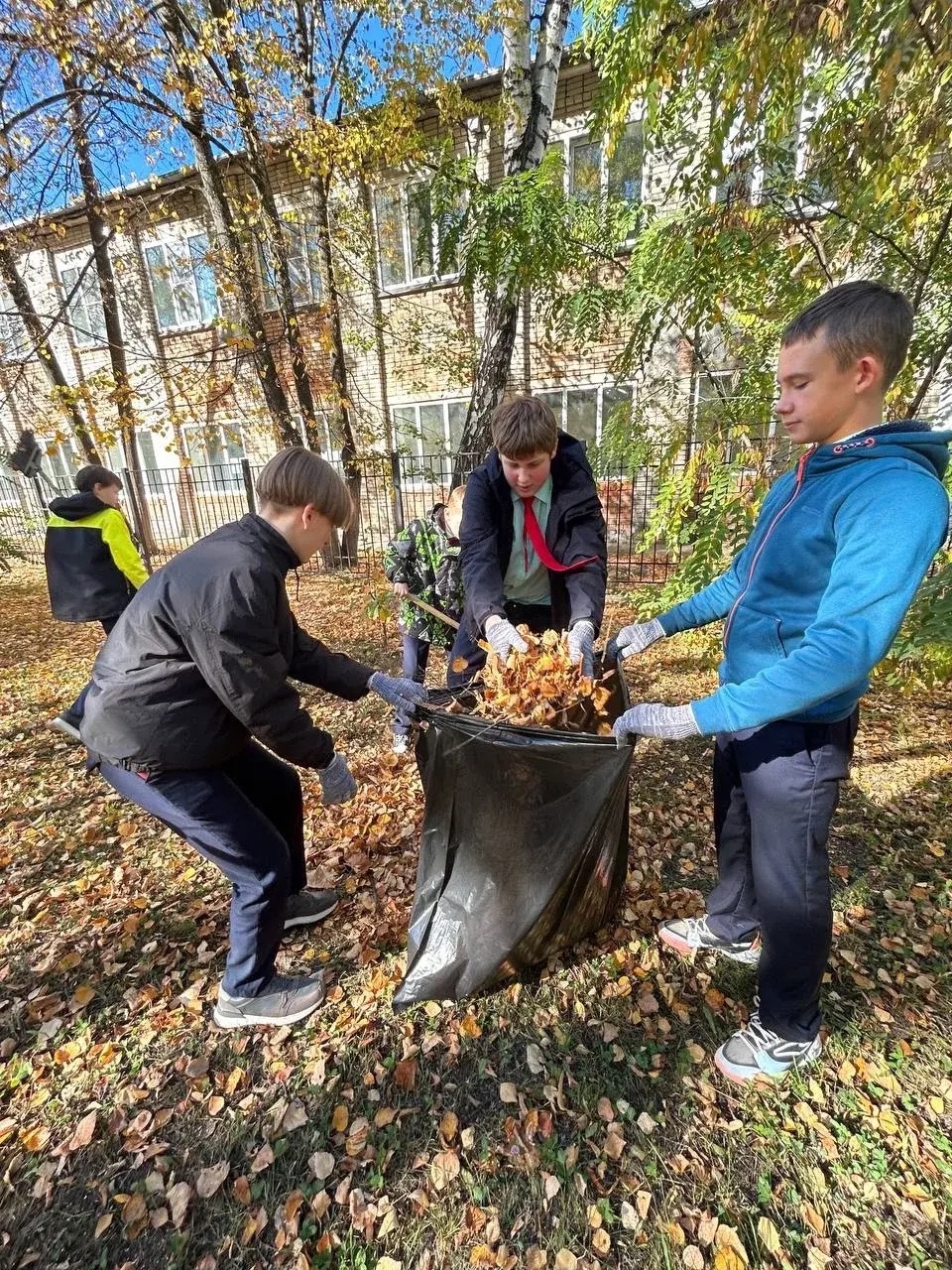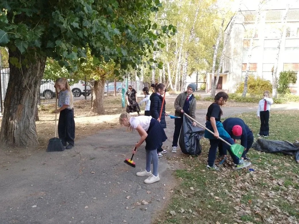 Осень — пора прощания с тёплым летом и подготовки к зимним холодам. А ещё это праздник чистоты, порядка и отличного настроения. Дружно вооружившись вениками, граблями и мешками для мусора, после уроков, учащиеся и педагоги проводили уборку пришкольной территории: собирали опавшие листья, подметали дорожки, избавлялись от мусора, подрезали кустарники, следили за порядком на школьном дворе и игровых площадках.