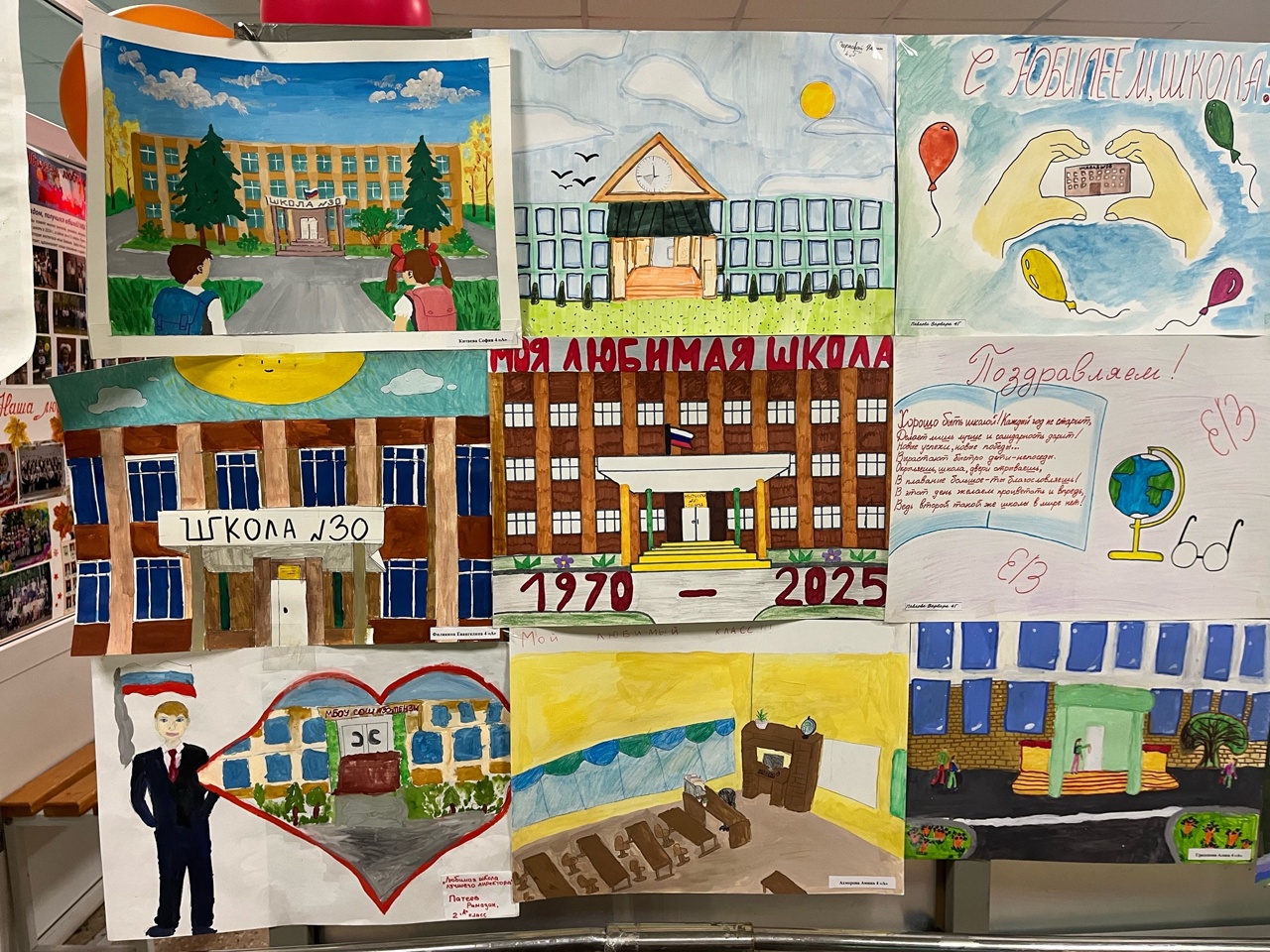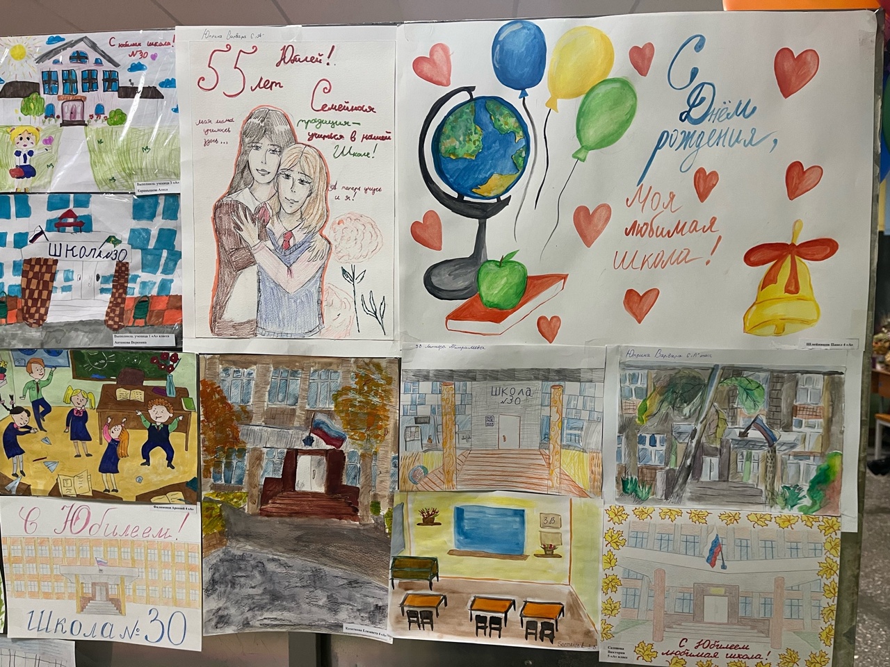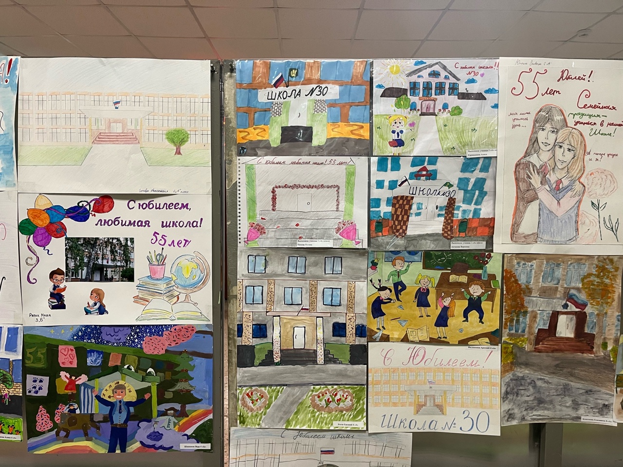 Галерея рисунков наших юных художников также вызвала восторг окружающих. Дети постарались передать чувства привязанности и любви к своему второму дому — школе №30.