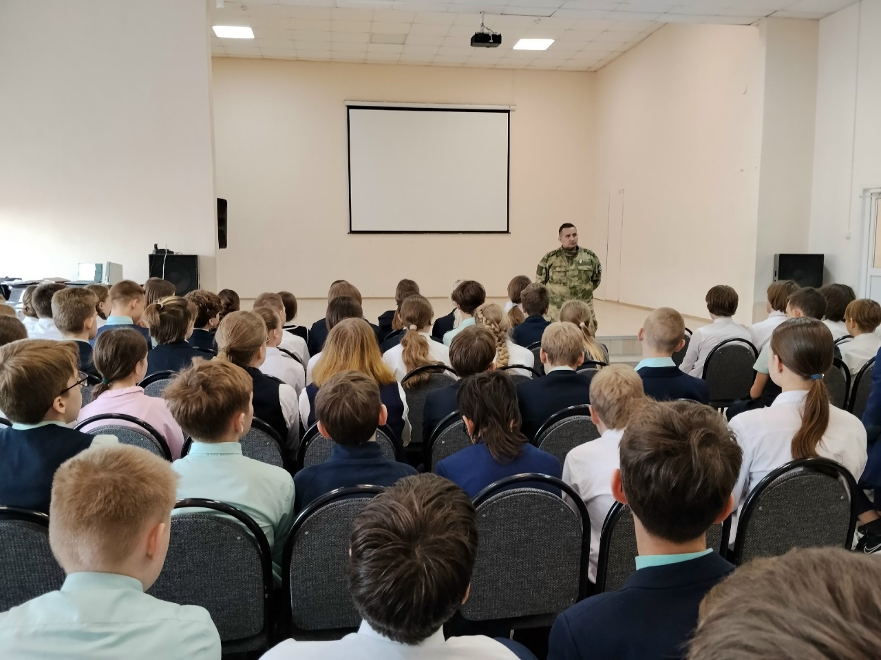 Гостем школы стал ветеран боевых действий Мещеряков Максим Сергеевич. Он поделился с ребятами не боевыми сводками из новостей, а личным опытом — тем, что чувствует человек, защищая интересы Родины, как важны боевое братство, взаимовыручка и сила духа.