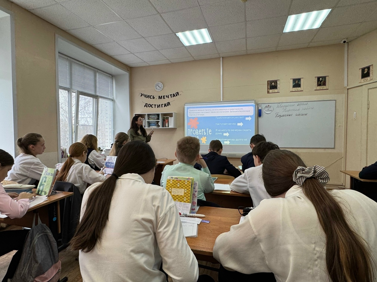 Многолетняя Анна Павловна провела в 6 «А» классе урок открытия новых знаний по теме «Безличные глаголы». Учителем был осуществлён оптимальный подбор языкового материала и видов деятельности учащихся на различных этапах урока, с помощью которых шестиклассники активно включились в познавательный процесс.