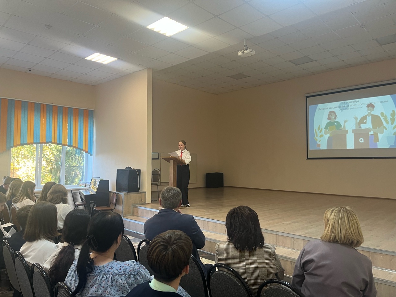 23 сентября состоялись дебаты, в рамках которых кандидаты в Президенты школы выступили перед администрацией и учащимися. Ребята достойно отвечали на каверзные вопросы и отстаивали свою точку зрения, озвучивали актуальные проблемы, касающиеся организации школьных мероприятий и акций, создания новых условий для проявления активности членов ученического совета, модернизации комплекса поощрений и наказаний в рейтинговой системе учащихся и др. Дебаты получились интересными и «живыми»: зрители активно поддерживали своих кандидатов, а главное — все увидели, что у нас в школе растут сильные и мотивированные лидеры.