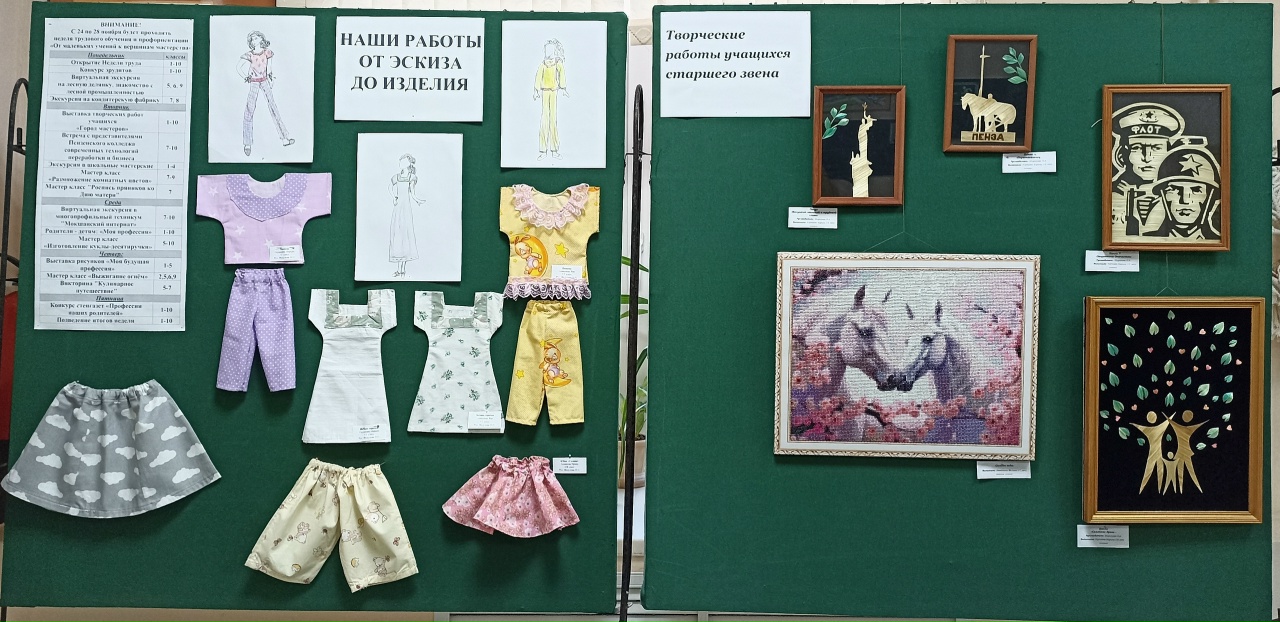 Кроме того, ребята оформили выставку «Город мастеров», на которой были представлены швейные изделия и другие творческие работы учащихся.